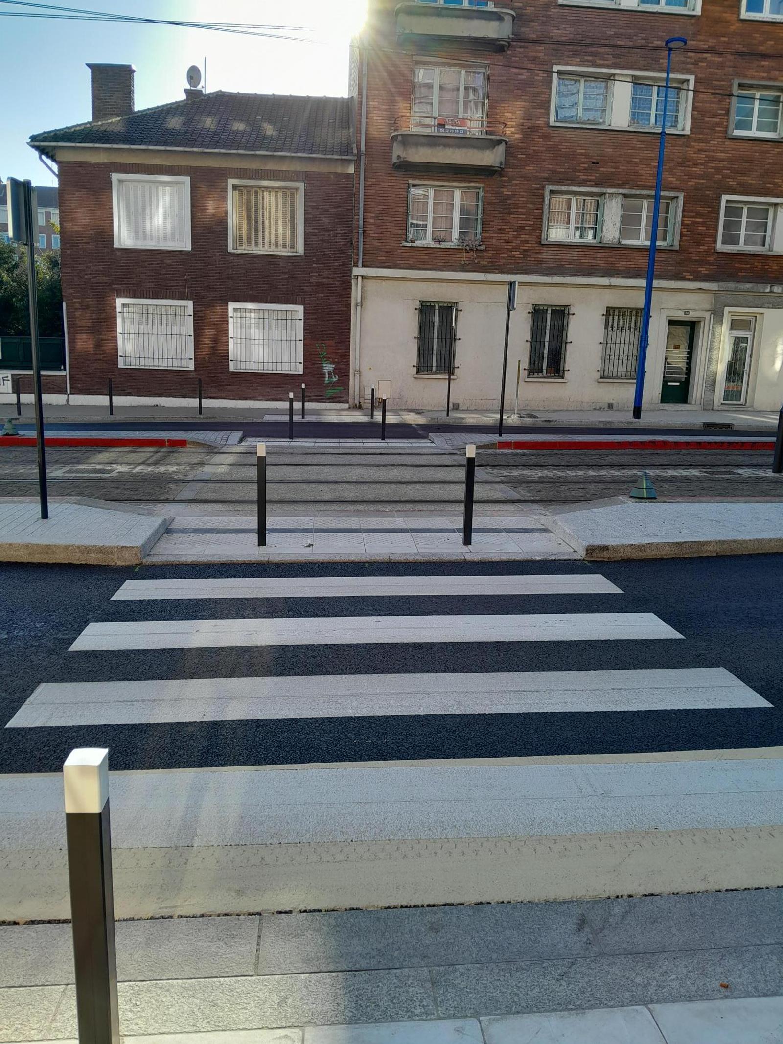 La voirie a également été rénovée, avec la pose d’une nouvelle couche de roulement et l’application d’un nouvel enrobé sur les trottoirs et places de stationnement. Le revêtement clair sur les trottoir, plus lumineux, contribue à limiter les effets d’îlots de chaleur en ville.