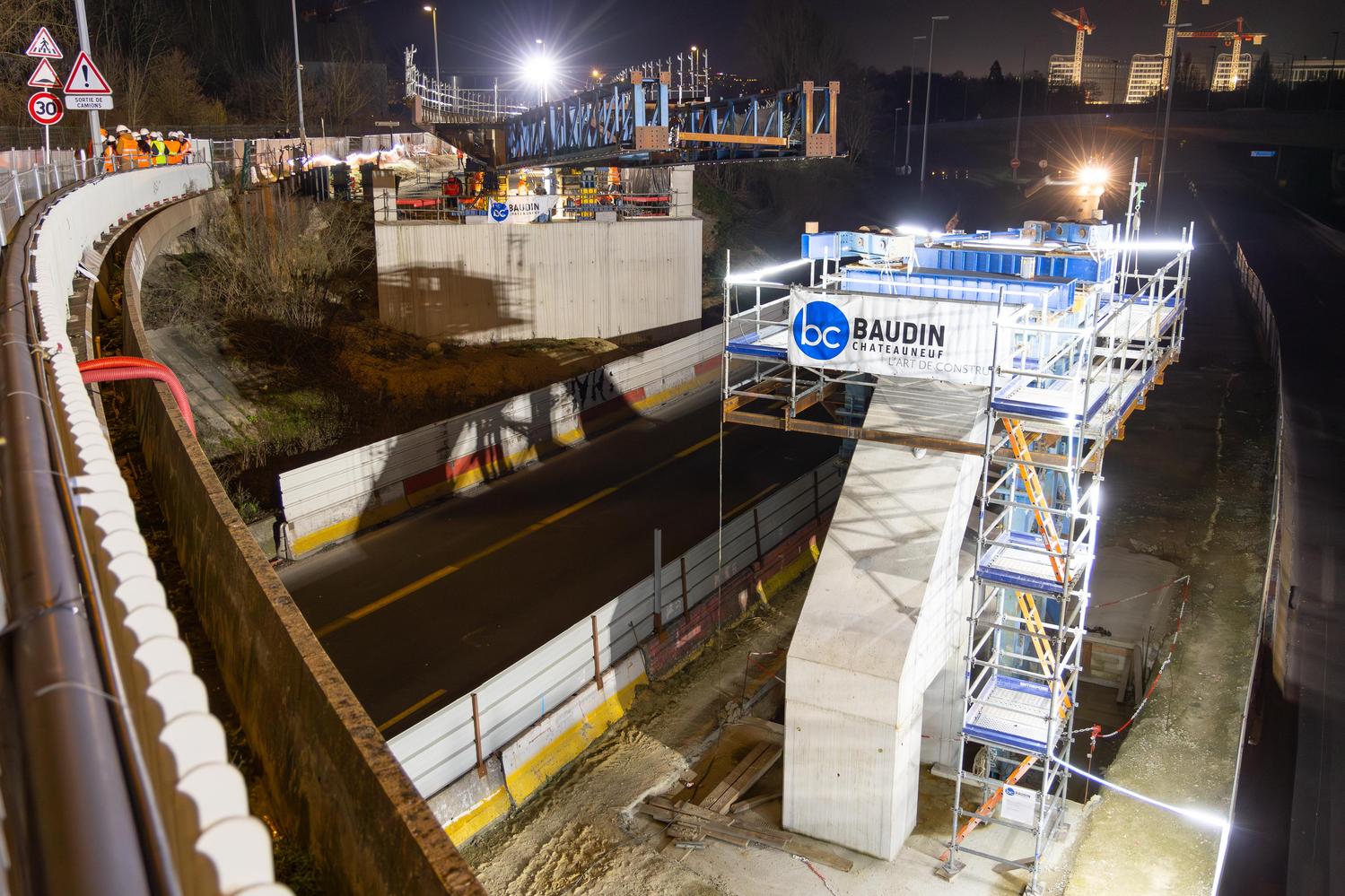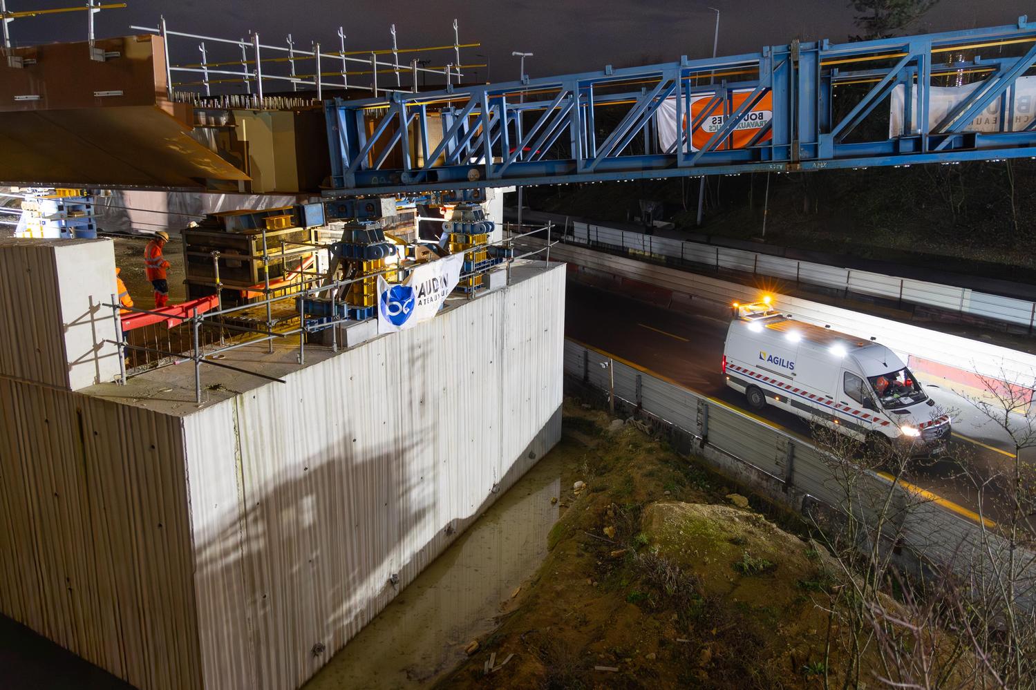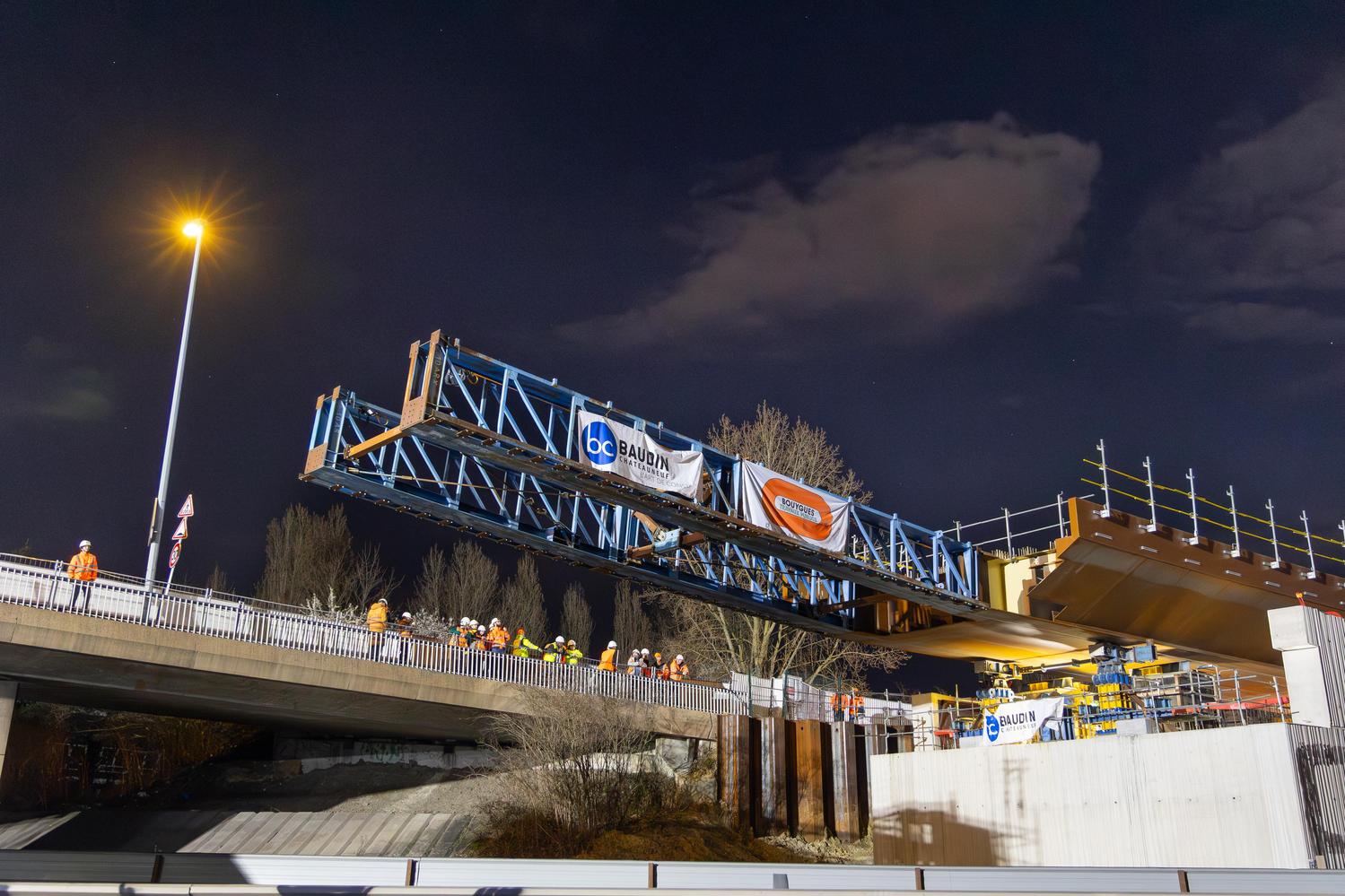 Mars - Lançage du pont de franchissement de l'A86 à Montreuil