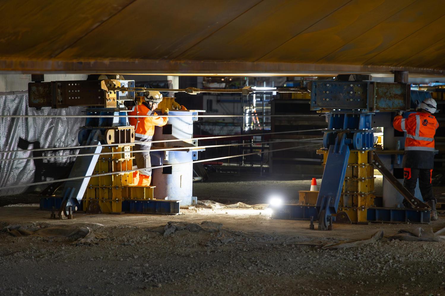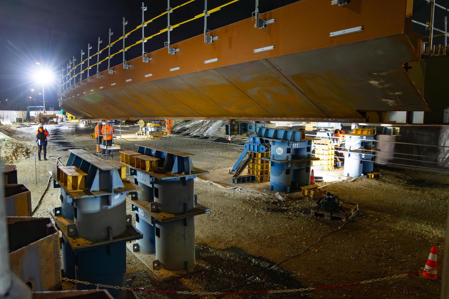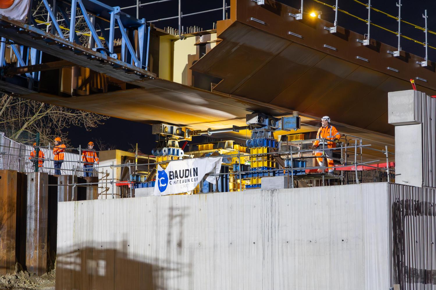 Mars - Lançage du pont de franchissement de l'A86 à Montreuil